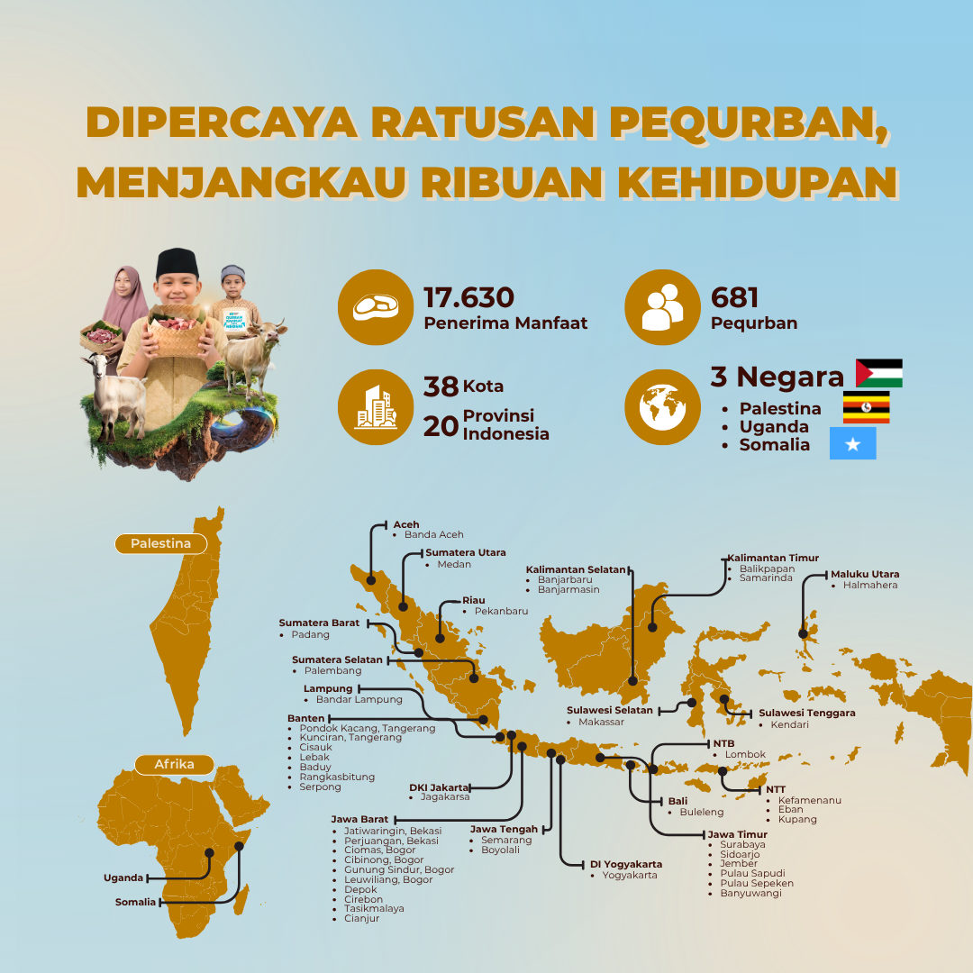 Amanah tersebut telah kami salurkan kepada lebih dari 19.000 penerima manfaat, yang tersebar di 36 kota dan 16 provinsi di Indonesia, serta menjangkau hingga Palestina, Uganda, dan Somalia.