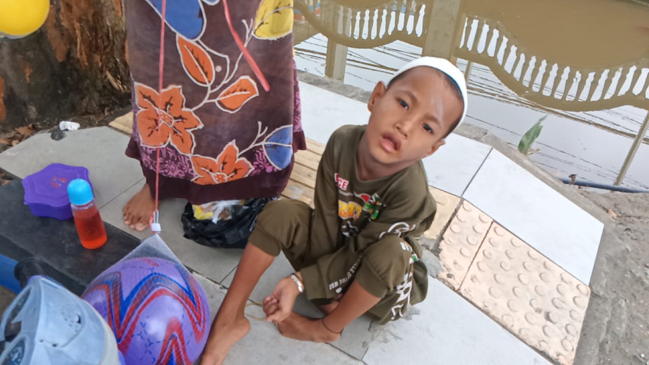 Ibu Ani (52 tahun) merawat cucunya yang disabilitas, Muhammad Sabil (7 tahun). Ia lahir kembar secara prematur di RS Anshari Saleh, tetapi kembarannya meninggal setelah beberapa saat setelah dilahirkan.