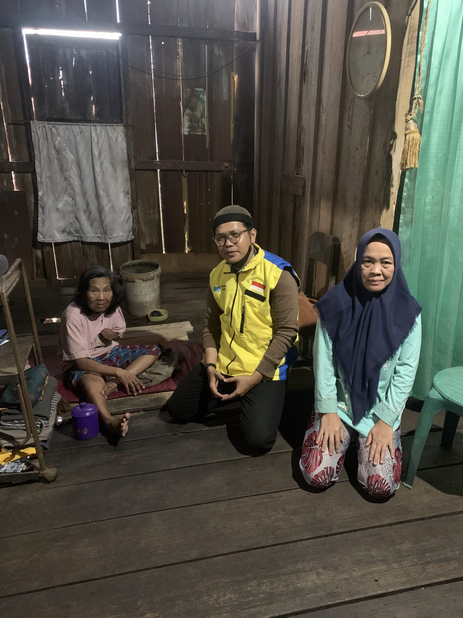 Ketika tim kami menghampiri dan memberi sedikit bantuan sembako, ia berkata terbatah-batah