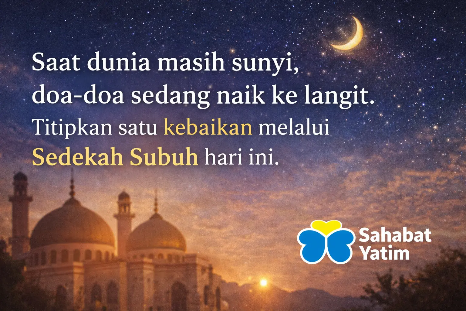Sedekah Subuh setiap hari, meringankan dosa dan membuka pintu keberkahan.Sahabat Yatim Tangerang